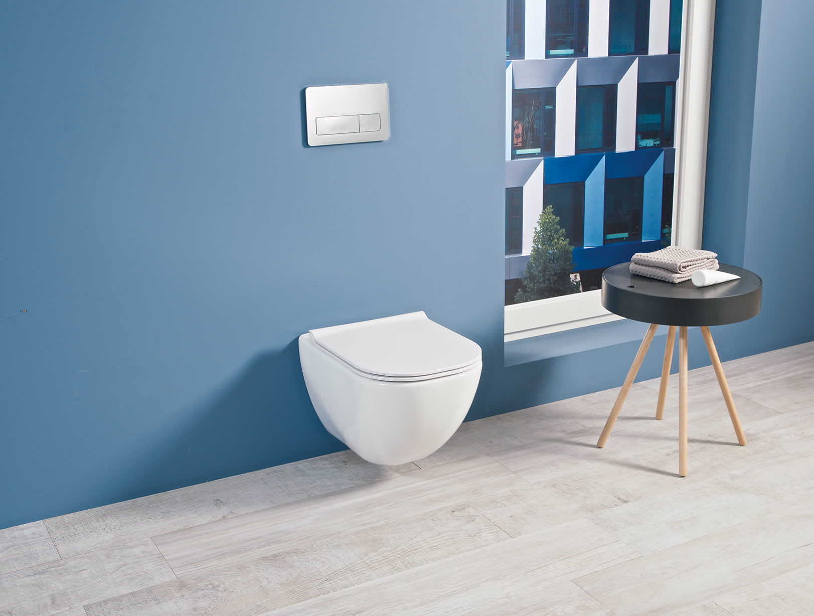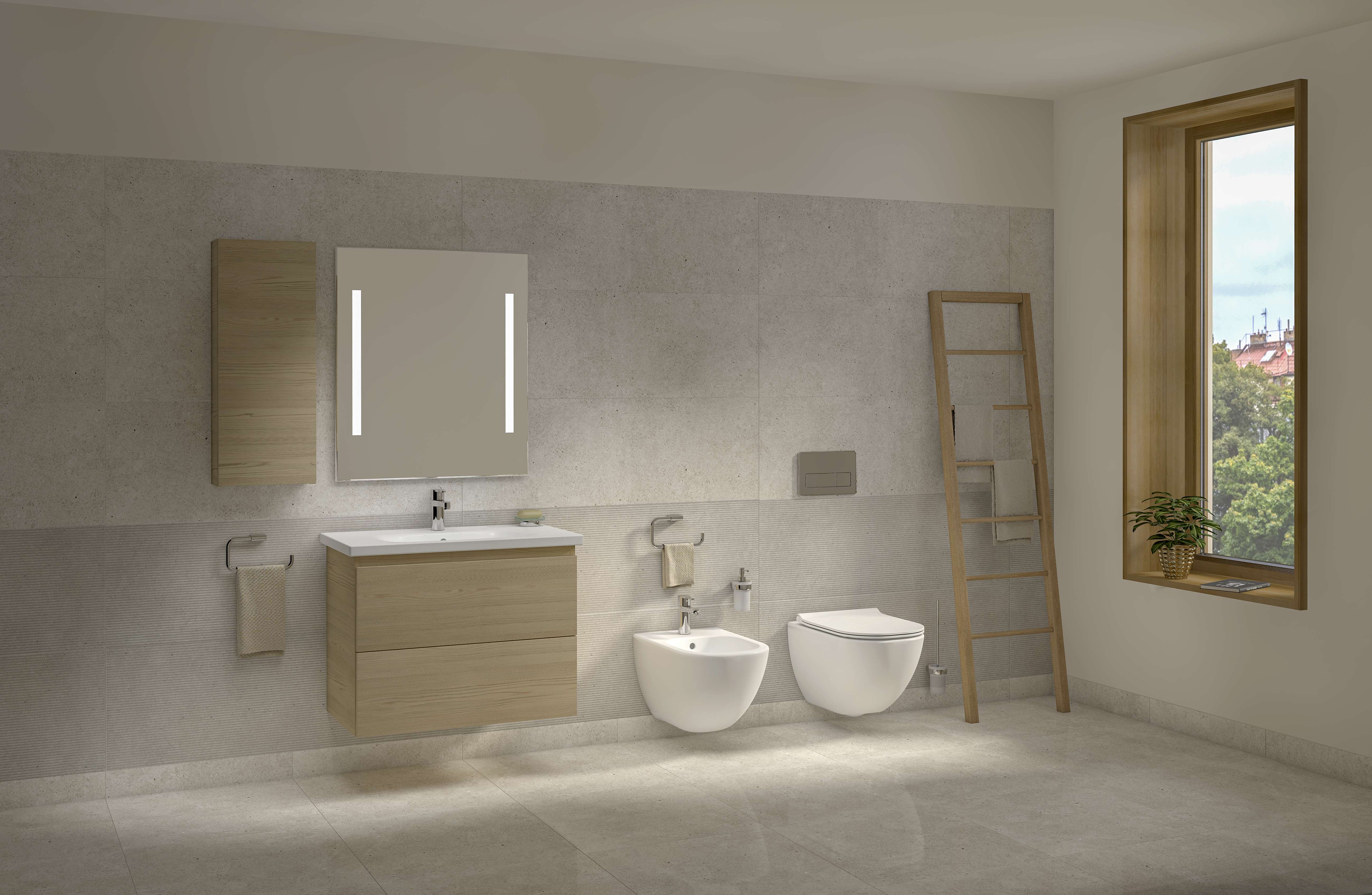 The wide range of products from the Mio-N bathroom series allows for great variability. The combination of pleasant elegance and practicality is brought by the vanity unit and washbasin from this series. Their graceful design corresponds to the Mio Rimless wall-hung toilet and also provides sufficient a storage surface. The advantage of Mio-N furniture is a simple timeless design enhanced by the absence of handles.