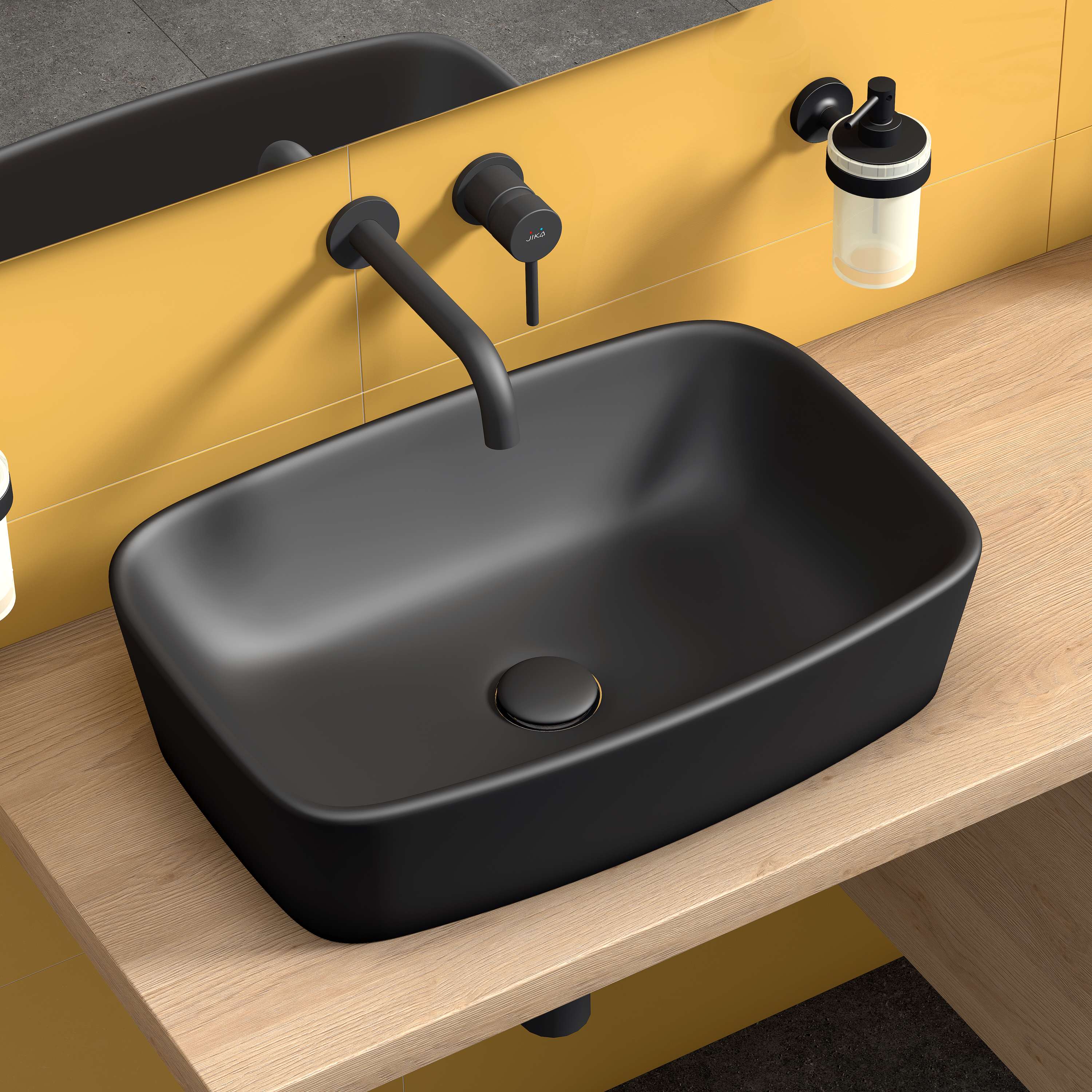The Lyra Plus rectangular washbasin bowl in a modern geometric design was designed in line with current bathroom trends. The washbasin is suitable for installation on a Cubito or Mio-N furniture countertop. The template for the cut-out is included in the washbasin package. Novelty is two new color versions: a white matte (batch 757) and an elegant black matte (batch 716) variant. Classic white (batch 000) is also available. We offer the washbasin without a tap bank, without an overflow and without a taphole. For a washbasin without an overflow, use only flow-through drains valve in the appropriate colour (must be ordered separately). We provide an extended warranty of 10 years for JIKA ceramic products.